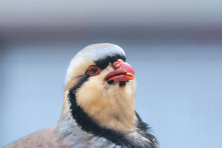 Red-legged Partridge showing distinctive plumage details, in West Sussex, England.