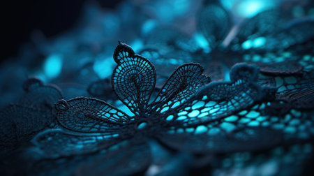 Ornate antique lace pattern on dark silk backdrop exudes elegance generated by artificial intelligence