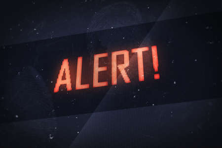Glowing orange ALERT sign on digital warning screen. Generative AI