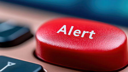 A close up of a red button on the keyboard that says alert, AI