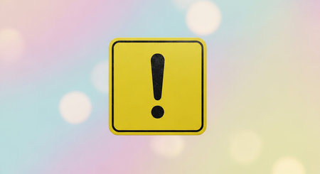 showing yellow warning triangle symbol with exclamation mark on a soft pastel gradient background with bokeh lights. resolution