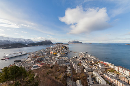 AALESUND, NORWAY - 2016 FEBRUARY 19. View over Aalesund city of Norway