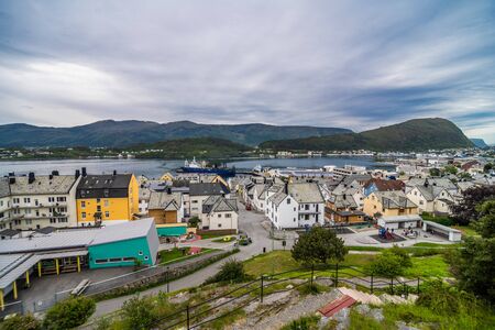 Cityscape of Alesund Norway - nature and architecture background