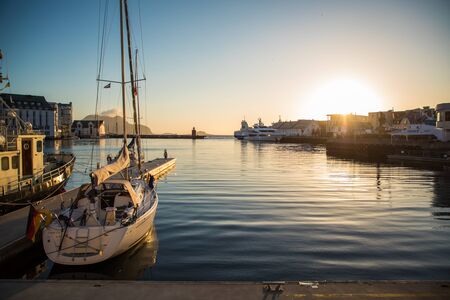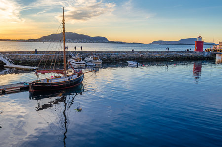 Beautiful sunset seen from the port of Alesund, Norway