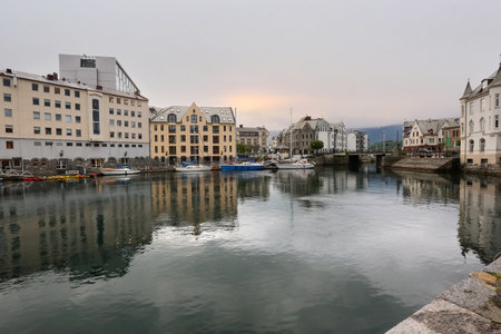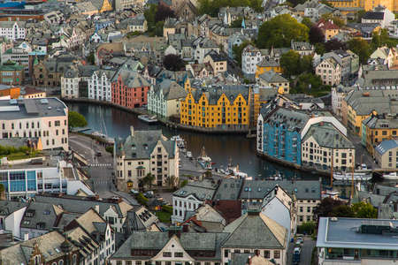 Cityscape of Alesund Norway at sunset - architecture background