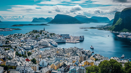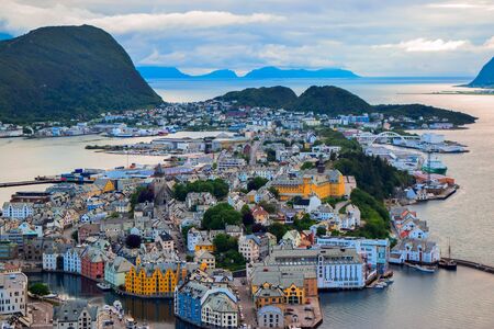 Panorama of Alesund Norway - nature and architecture background