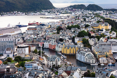 view of Alesund port town on the west coast of Norway