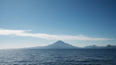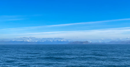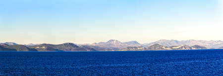 Distant mountains on the sea and blue sky scenery