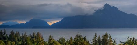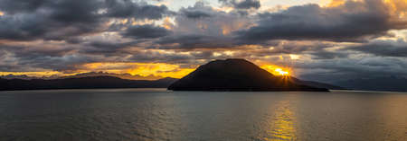 Beautiful sunset in Alaska during summer season. Beautiful orange colors and dark clouds