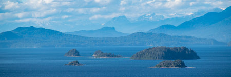 Panorama. Islands in the North lake. Islands Caltor at Norilsk lake Keta.
