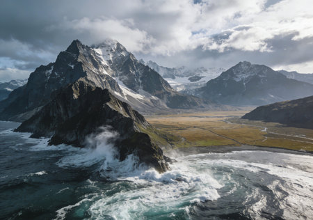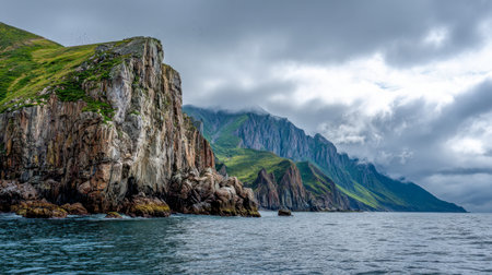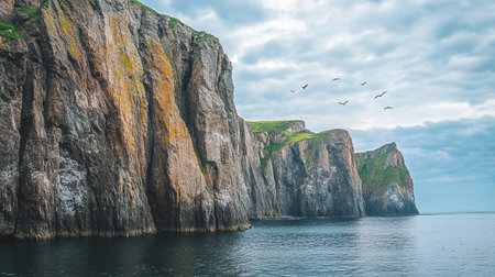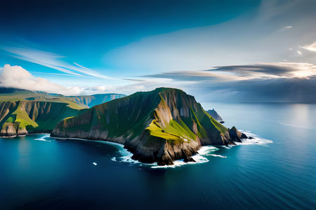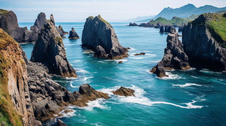A breathtaking airborne see of unprecedented coastal cliffs get together the essential blue ocean. Creative resource, AI Generated