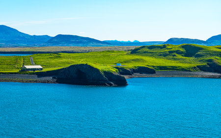 Reykiavik, Iceland, the coast in front of the city seen from the sea