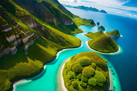 Island Beauty: Captivating Aerial Snapshot of Sea's Enchanting Archipelago