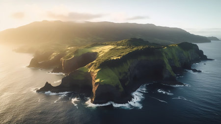 Generative AI : Aerial view of Pico Mountain on Ilha do Pico island on Azores archipelagos Portugal