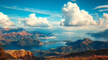 Sea islands and blue sky and white clouds landscape