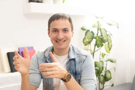 Handsome smiling and casual young man looking. High resolution photo.