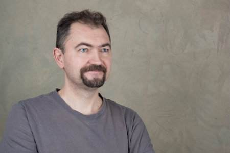 Portrait of middle-aged unshaved man smiling
