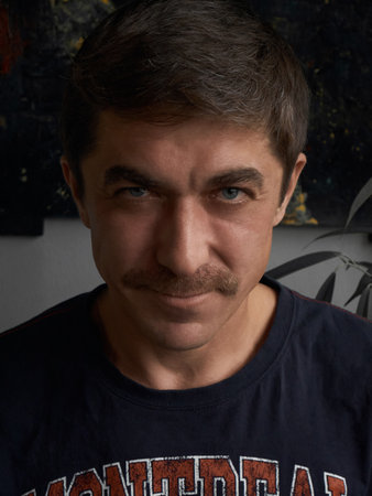 Portrait of a serious man with graying hair