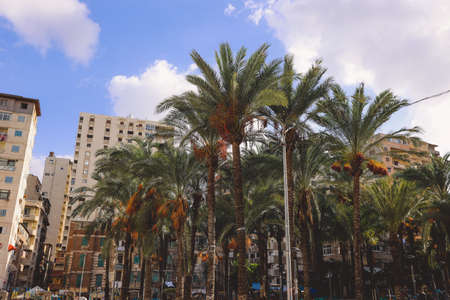 ALEXANDRIA, EGYPT - DECEMBER 17, 2017: The coastal quarters of the city and the streets, branching from Corniche avenue, have European styled architecture, on December 17 in Alexandria.