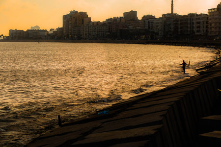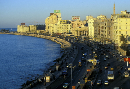 The urban coast of Alexandria is the best place for daily walk, Egypt.