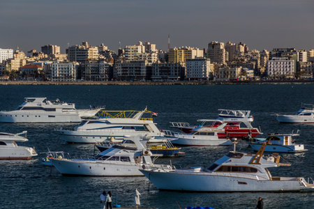 ALEXANDRIA, EGYPT - MARCH 29, 2019: Port of Alexandria in Alexandria City