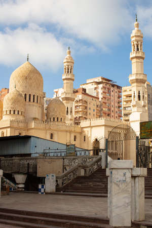 ALEXANDRIA, EGYPT - DECEMBER 17, 2017: Abu al-Abbas al-Mursi mosque is the notable landmark of the city, located next to the Corniche promenade, on December 17 in Alexandria.