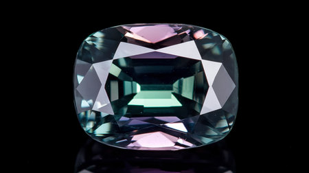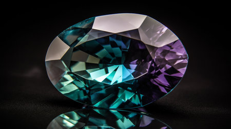 Alexandrite is a rare precious natural geological stone on a black background in low key. Fashionable jewelry elegant decoration. AI generated.