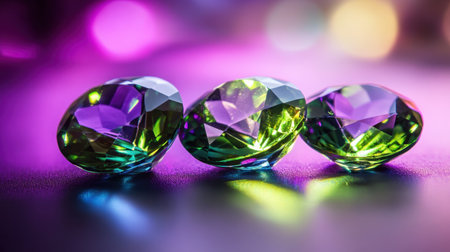 AI Generated. A cluster of purple and green gemstones in a tight shot