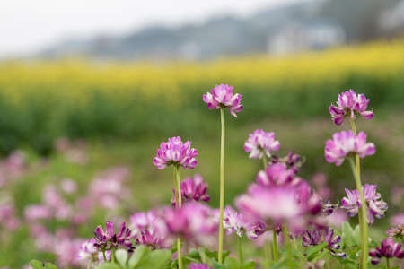 Securigera (Coronilla) varia flowers. Purple crown vetch