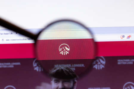 Los Angeles, California, USA - 20 March 2020: AIA Group company logo on website page close-up on screen, Illustrative Editorial.