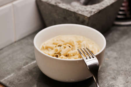Delicious and fresh italian food. Pasta with cheese in the kitchen. Food concept.