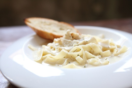 Delicious fettuccine alfredo with parmesan cheese and parsley.