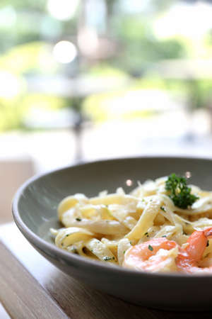 Spaghetti fettucini cream sauce with shrimp , Italian food