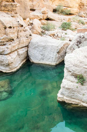 Fantastic view of the emerald turquoise waters of the Siq canyon in the United Arab Emirates