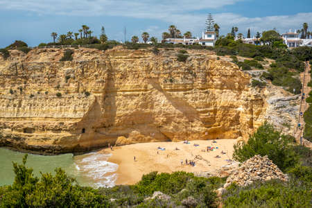 Beautiful view of the Portuguese coastline in the Algarve region, near Benagil, Lagoa, Algarve, Portugal.