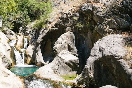 Small waterfall and natural pool in Sapadere canyon near Alanya in Turkey
