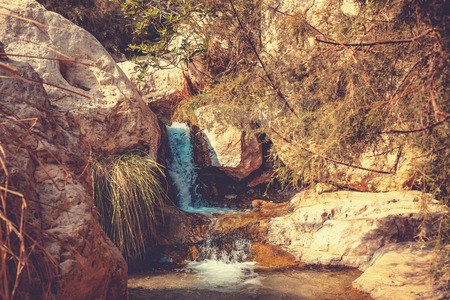 Waterfall in the nature reserve Ein Gedi. Israel. Oasis in the desert