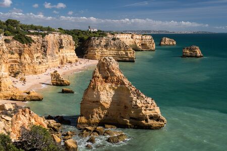 A beautiful Atlantic beaches and cliffs of Algarve, Portugal on a sunny summer day