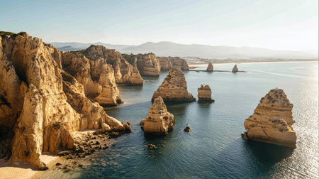 The tranquil and serene ambiance of the Algarve's coastline is perfectly captured in this stunning image, showcasing the awe-inspiring