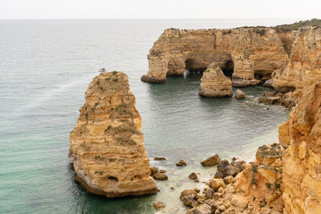Limestone formations on the coast of Algarve at Lagos, Portugal.
