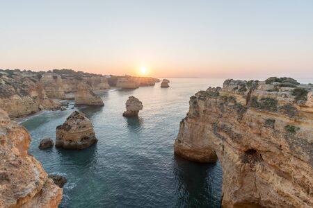 Portuguese coast line in Algarve during the sunrise, Portugal