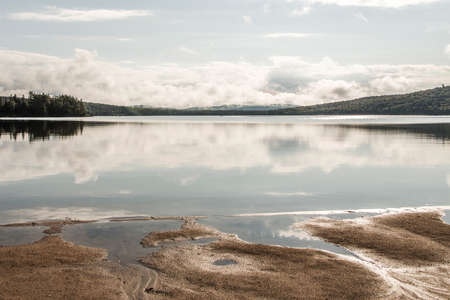 Scenic view of a lake and the forest at 2 Rivers Lake at Algonquin Park, Ontario, Canada