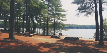 Canada Ontario Lake of two rivers natural wild landscape near the water in Algonquin National Park