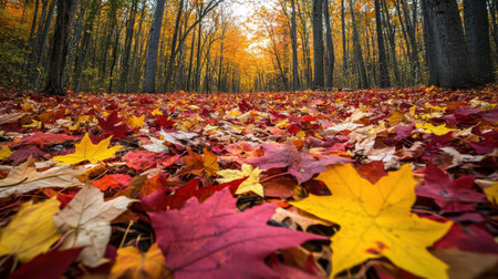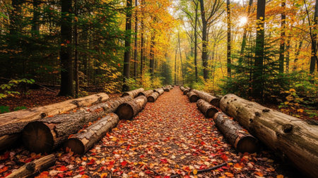 Experience a stunning autumn forest filled with vibrant leaves and sunlight. The picturesque scenery invites tranquility and exploration in nature's glory.