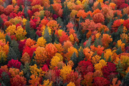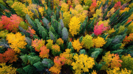 A breathtaking aerial view of an autumn forest in beautiful colors