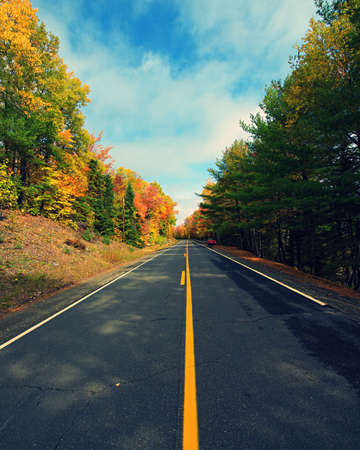 Autumn Landscape with road and colorful trees in Quebec, Canada