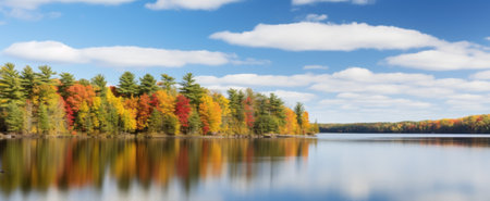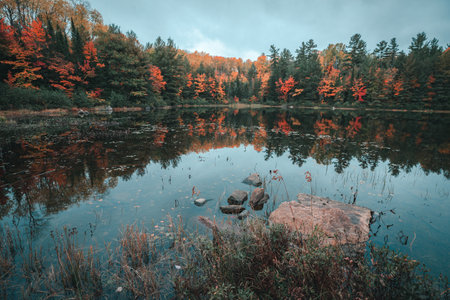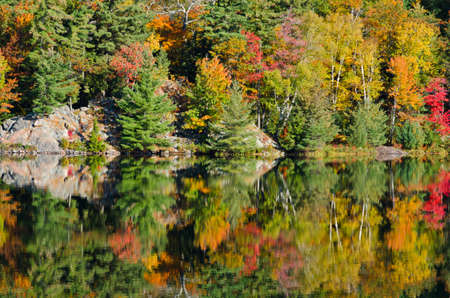 Autumn lake with colorful trees reflected in the water, Ontario, Canada