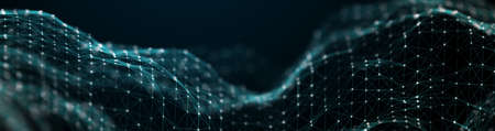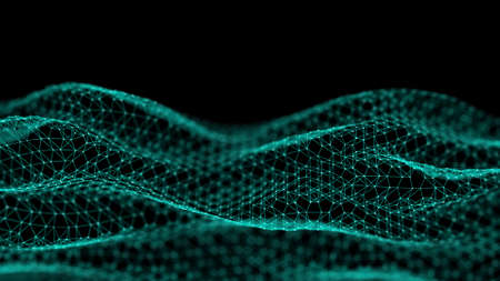 Abstract wave background with dots and lines moving in space. Technology illustration. Futuristic modern dynamic wave. 3d rendering.