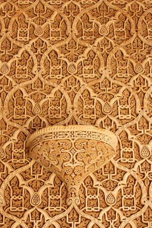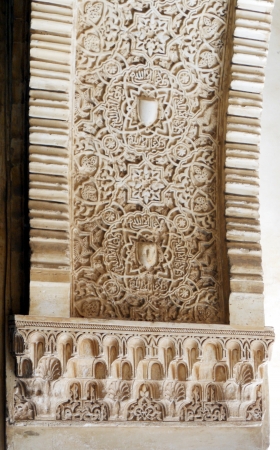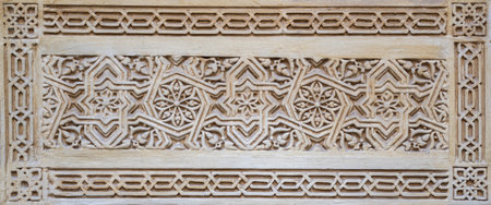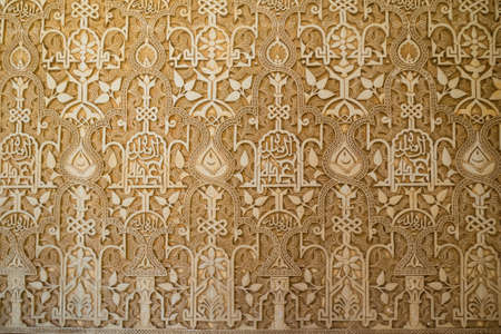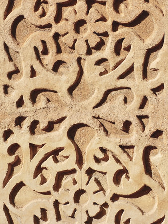 Wall carving from Alhambra Palace in Granada Spain makes a ruins background