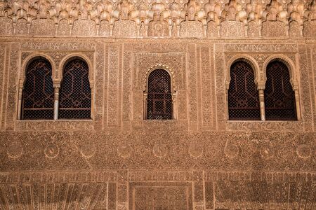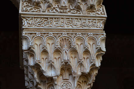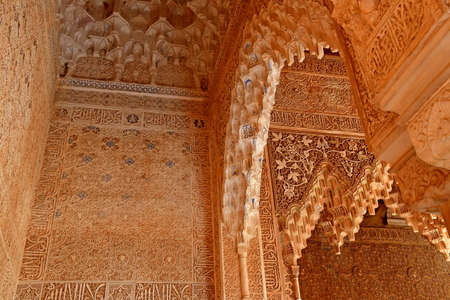 Granada, Spain - 06 11 2014: ornamental details of the artful moorish castle of Alhambra Palace in Granada Spain, a Unesco world heritage